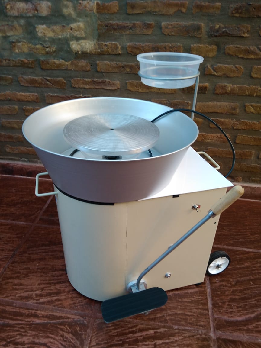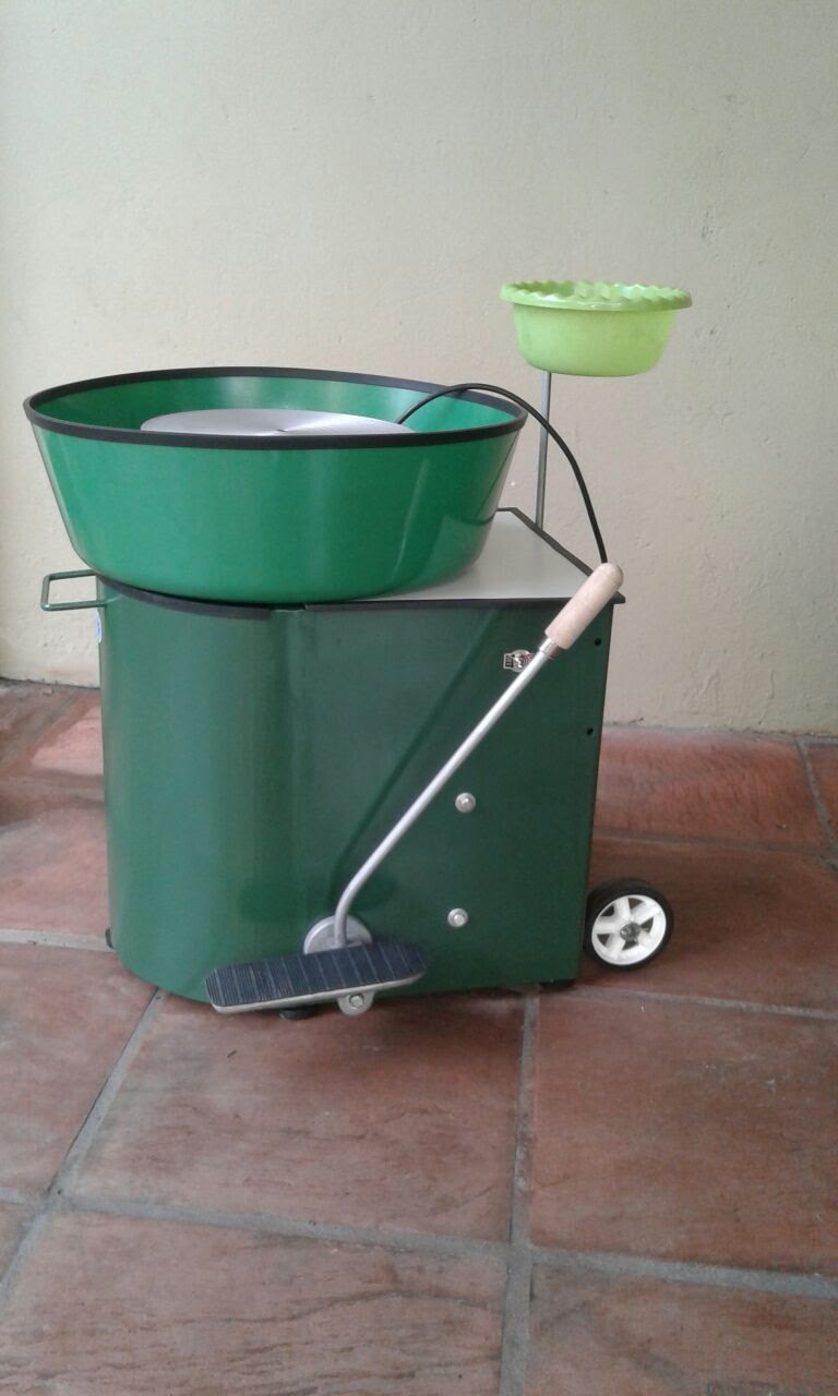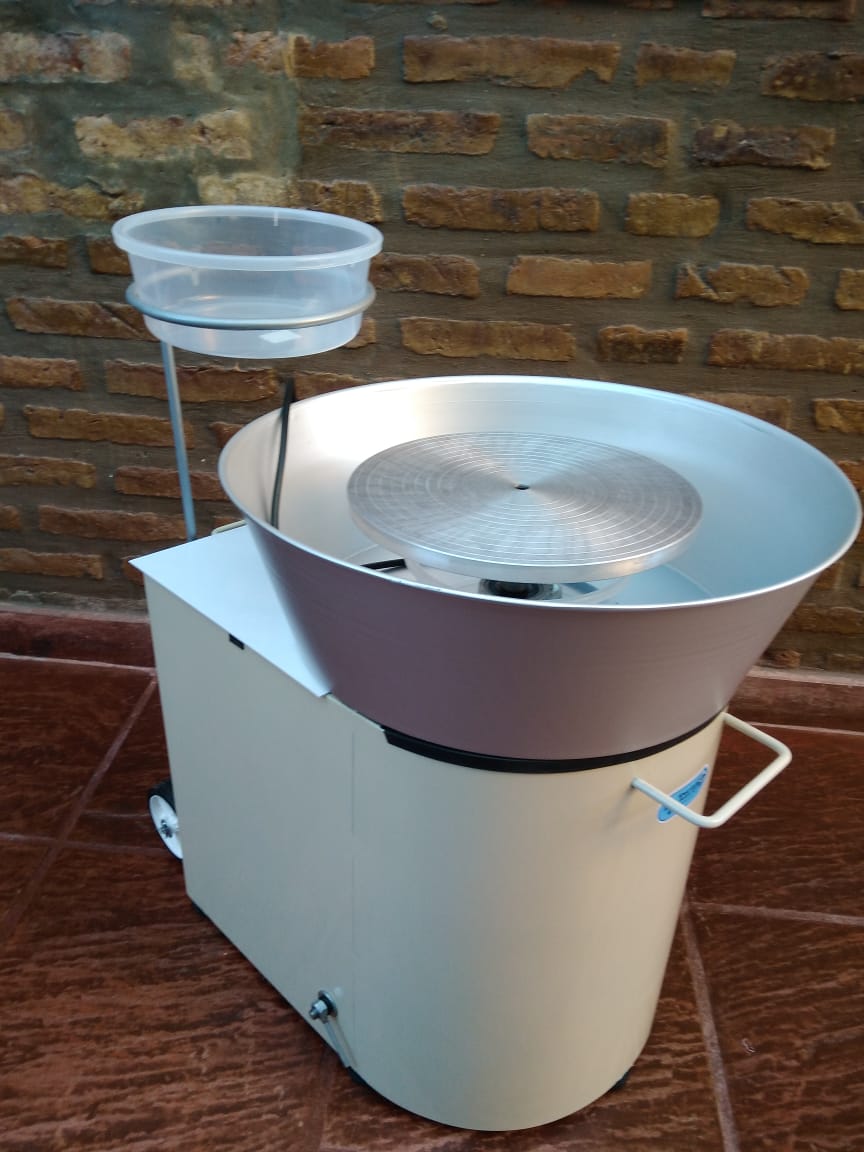 - Platina de aluminio de 290 mm de diámetro fijado sobre Cono, con llave de extracción y Eje montado sobre rodamientos autocentrante con bandeja de protección, libre de arcilla.